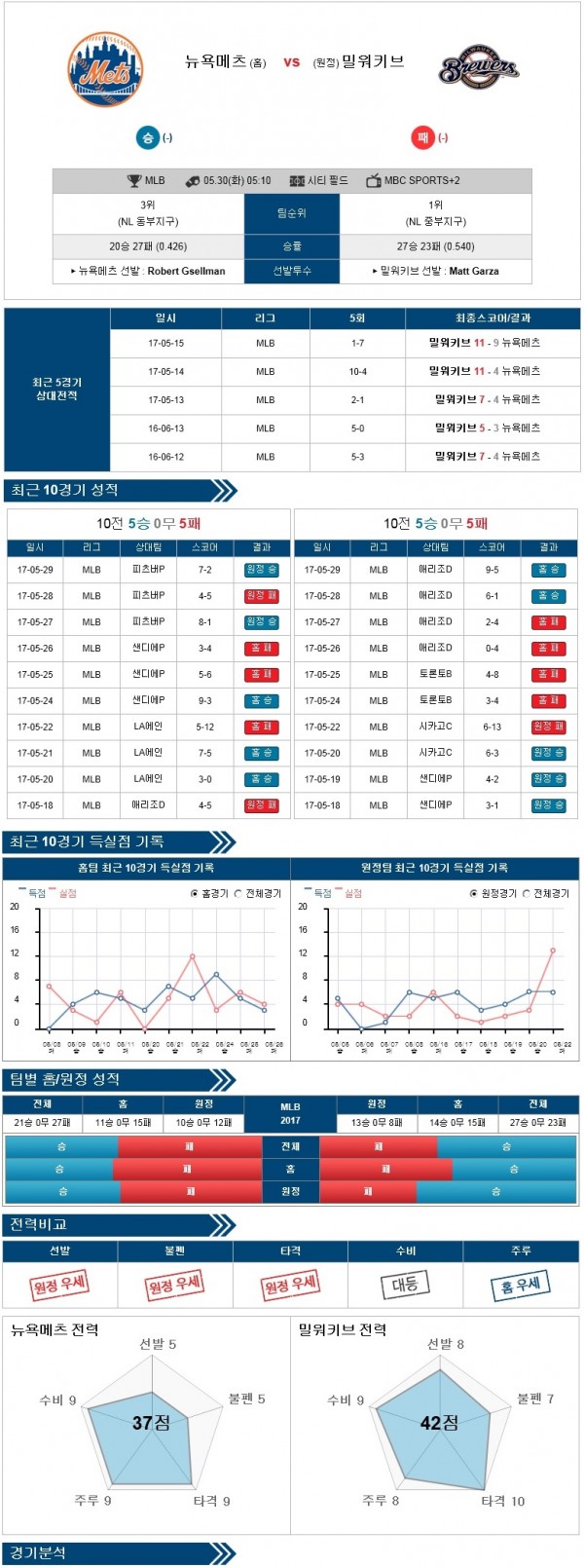 5월30일 [ MLB ] 뉴욕 메츠 vs 밀워키 브루어스